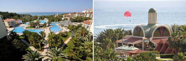 На территории 2 открытых бассейна с детскими отделениями и бассейн с горками, мини клуб, детская площадка, крытый бассейн с детским отделением, СПА центр.