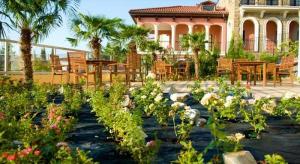 Территория отеля 0,3Га представлена уютной площадкой для отдыха в тени, розарий насчитывающий более 30 видов прекрасных цветов, тенистая дорожка к пляжу с площадками для игр и беседками для отдыха. Автономное тепло- и водоснабжение обеспечивает устойчивую работу в любое время года.