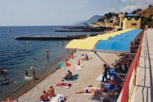 собственный мелкогалечный пляж в 500 м от санатория, оборудованный (навесы, лежаки, раздевалки, душ, медпункт).