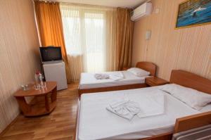 2-х местный 1-но комнатный «Комфорт». В номере: санузел, современная мебель, ТВ, холодильник, кондиционер, балкон. Площадь номера 18 м2.