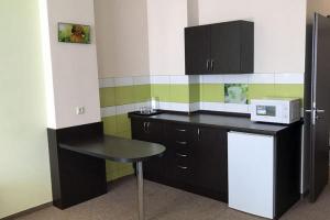 кондиционер, кухонный уголок, микроволновая печь, балкон с видом на море.