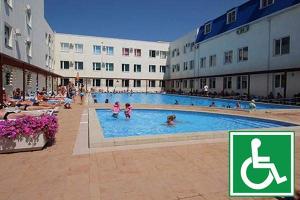 Размещение: Девять 2-4-этажных спальных корпусов. Все корпуса без лифтов, кроме корпуса № 4 (лечебный).