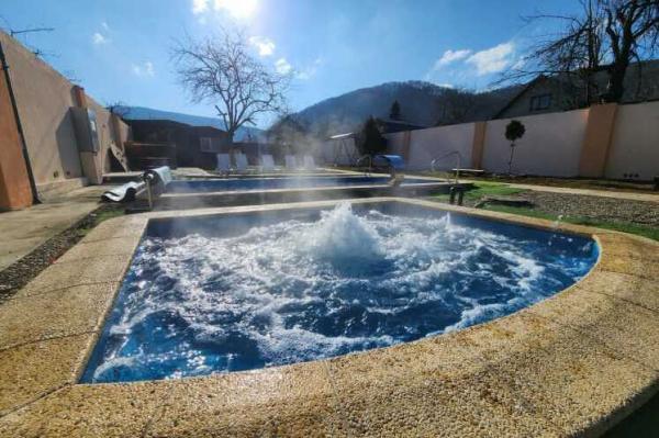 Два круглогодично работающих бассейна, баня, купель, беседки и очаг, закрытая территория.