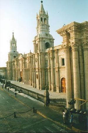 Старый кафедральный собор был разрушен пожаром в 1844 году. Он был реставрирован в 1868 году жителем Арекипы Лукасом Поблете, построен в стиле Ренессанса с французским влиянием и считается одним из самых больших в Южной Америке.