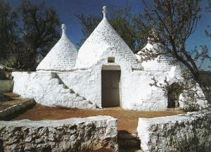 Трулли - это очень старые причудливые круглые сооружения со сводчатым потолком и крышей конической формы, сделанные полностью из камня - местного известняка, без использования цементирующего раствора. Cтены обычно выбелены, а каменная черепица на крышах домов часто разрисована религиозными, языческими или магическими символами. Своё название они берут от латинского слова "trulla", что значит купол.
