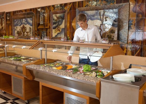 Питание осуществляется по системе шведского стола — востребованный подход во многих заведениях. В санаториях это особенно актуальная опция.
