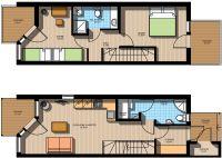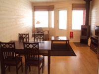 Постройка 2009 года. На первом этаже гостиная с камином, кухня, сауна и терраса. В гостиной раскладной диван на двоих (ширина 160 см) . На втором этаже туалет, душ, 2 балкона и 2 спальни (двуспальная кровать в каждой) . Всего 6 спальных мест.