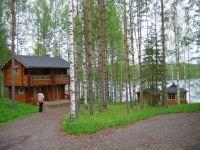Площадь 133 м2, постройка 2003 года. Кухня, гостиная с диваном - кроватью, спальня на первом этаже, 2 спальни на втором этаже (2 + 1 спальное место в каждой) , холл с угловым диваном - кроватью, сауна с электрокамином, 2 душа, туалет, большая терраса. Дополнительное строение с 2 - мя спальнями (по 2 кровати в каждой) . Во дворе гриль - беседка, береговая сауна с причалом. Зимой можно арендовать снегоход у хозяина коттеджа.