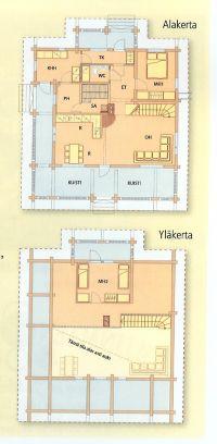 Площадь 122 м2, постройка 2006 года. 2 спальни + ярус (всего 8 спальных мест) , гостиная, кухня, дровяная сауна, душ, туалет, терраса.