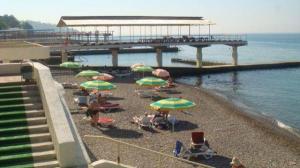 Оборудованный, галечный в 30 метрах от корпусов протяженностью 175 м.