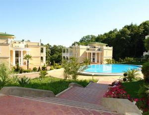 Современное комфортабельное здание пансионата, скрытое от городского шума и утопающее в пышной зелени уникального дендропарка, занимающего площадь более 50 гектар, расположено рядом со знаменитой Дачей Сталина на высоте 130 метров над уровнем моря, откуда открывается великолепный вид на морское побережье. Центр города и ж/д вокзал находится в 15 минутах, а аэропорт - в 25 минутах езды от пансионата.