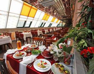 Специалистами пансионата разработано заказное сбалансированное меню с учетом калорийности и рекомендаций лечащего врача, с неповторяющимися в течение 14 дней блюдами. Обеденный зал пансионата рассчитан на 300 посадочных мест, разделен на два зала – общий и детский. Из окон зала открывается красивый вид на парк и море. В обеденном зале постоянно поддерживается прохладный очищенный воздух, присутствует удобная современная мебель, для маленьких детей имеются специальные детские стульчики. Все блюда готовятся из экологически чистых продуктов кубанских производителей. Также на территории расположены: бар «Экспресс», бар «Вечерний» на пляже, спорт-бар.