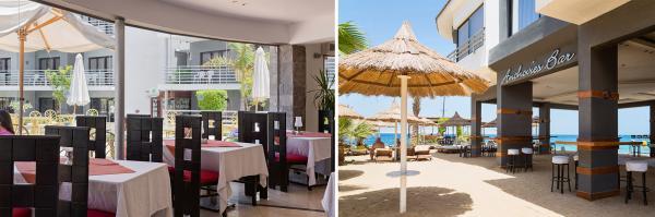 Бар у бассейна работает до захода солнце. Есть бар с закусками на пляже.