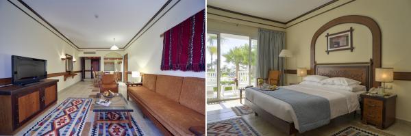 Отель расположен на пологом склоне среди обширных ландшафтных садов, открывая фантастический панорамный вид на пустыню, Синайские горы, остров Тиран и бирюзовые воды залива Акаба.
