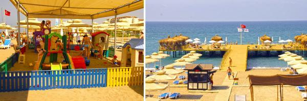 Пляж отеля Club Nena Hotel 5* - 1 - я линия. 3 бассейна. Анимация (6 дней в неделю) . Пляжный отель, отель для семейного отдыха.