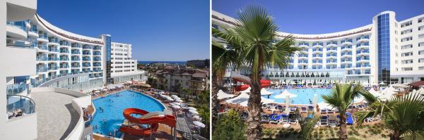 Расстояние до песчаного пляжа 350 м. (трансфер на пляж бесплатно) Развлекательная программа для детей, мини - клуб для детей 4 - 12 лет. 3 бассейна, 2 водные горки. Пляжный отель, Отель для семейного отдыха
