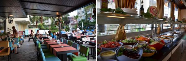 Территория у отеля небольшая, но уютная, с двумя бассейнами, водными горками для взрослых и маленьких гостей отеля. Подойдет для бюджетного отдыха всей семьей.