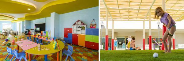Детский бассейн, Детский клуб, Детская площадка, Детское меню: детский буфет в основном ресторане во время обеда и ужина, Детская кроватка: По запросу, Услуги няни: По запросу, платно