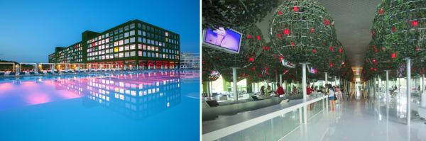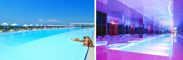 Общее количество бассейнов: 5 открытых бассейнов: Relax бассейн - 104 m, Regular бассейн - 54 m, Вилла бассейн -60 m, Вилла бассейн - 40 m, Бассейн с водными горками. 1 Крытый бассейн и джакузи в Spa Center