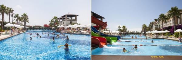 Общее количество бассейнов: 9 бассейнов. Открытые Плавательные Бассейны: 1 Отрытый бассейн, 1 Релакс бассейн, 1 Мини бассейн, 1 Детский бассейн. Открытыe Бассейны с горками: 1 открытый бассейн с горками, 1 детский бассейн. Закрытыe Плавательные Бассейны: 1 закрытый бассейн, 1 детский закрытый плавательный бассейн, 1 SPA шоковый бассейн.