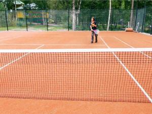На территории комплекса расположены: открытый грунтовый теннисный корт, футбольное (волейбольное) поле с искусственным покрытием, баскетбольная площадка.