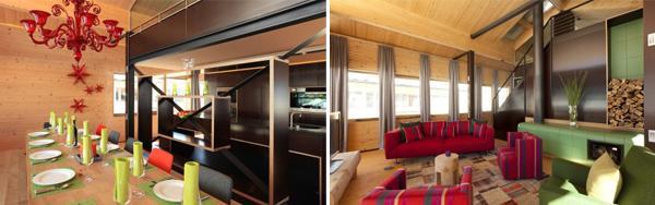 Design Chalet 686 на 6-8 человек: гостиная-салон, открытая кухня со столовой, галерей, солнечная терраса, спальня со смежной ванной с душем, ванной и туалетом; детская спальня детская спальня, в которой может разместить до 4 детей, с ванной комнатой с душем и туалетом; домашний кинотеатр с возможностью размещения в нем еще одной спальни.