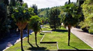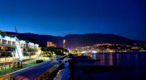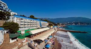 Расположен в центре Ялты на берегу моря, со своим закрытым пляжем.