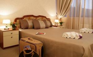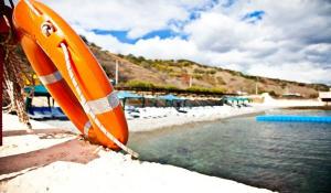 Что касается инфраструктуры то отдыхающие могут пользоваться открытым бассейном, услугами детской комнаты. Для гостей проводятся анимационные программы для всех возрастных категории, а также пешеходные экскурсии по городу. На пляж отдыхающих возит автобус – рейсы отправляются каждые полчаса, так что посещение пляжа более чем комфортное. На собственном галечномобустроены кабинки для переодевания, есть лежаки, навесы, благоустроенный туалет.