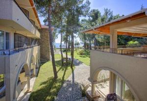 Находится на самом берегу моря с видом на курорт Пицунда, на парковой территории.