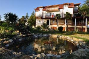 Территория отеля «Самшит» оборудована водоемом, который удачно вписался в ландшафт, между сосновых аллей и пальмовых аллей. Здесь прохладно в самый невыносимый летний зной. Вас ждет комфортный отдых, хорошее питание и очень радушный персонал. До собственного пляжа всего 10 метров.