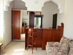 - Family studio (26 кв.м) 2-комнатный полулюкс. Две смежные комнаты образуют студию с двумя зонами отдыха: спальную зону с двуспальной кровтью и гостевую зону с удобным диваном. В номере: кровать 160*200, диван, кондиционер, телевизор (кабельное телевидение), телефон, холодильник, мини-бар, письменный стол, Интернет, сейф. Санузел: ванна, душ, туалет, фен, парфюмерия, халаты, тапочки.