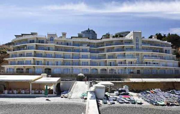 собственный мелкогалечный благоустроенный ( 2 карты пляжа) (шезлонги, теневые навесы), в 100 м от отеля (спуск на панорамном лифте). К услугам отдыхающих прокат пляжного инвентаря и водных аттракционов. УСЛУГИ И ИНФРАСТРУКТУРА: