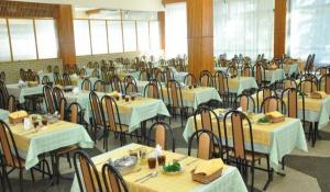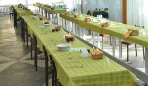 Диетическое питание занимает в курортном лечении очень важное место. При составлении меню диетических столов учитываются физиологические нормы питания человека и индивидуальные назначения врача. В столовой санатория, состоящей из двух обеденных залов на 100 мест для «колясочных» больных и на 350 мест для остальных отдыхающих, организовано 4-х разовое питание по системе «меню-заказ». В течение всего года на столах в ассортименте свежие овощи и фрукты, зелень, натуральные соки, витаминные напитки, широкий выбор мясных и рыбных блюд, кондитерских изделий. Все блюда готовятся из экологически чистых продуктов, под наблюдением врача-диетолога и квалифицированного персонала.