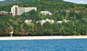 Пляж (мелкая галька и песок) находится в 300 метрах от санаторий "Магадан". Пляж полностью оборудован: раздевалки, лежаки, питьевые фонтанчики, мойки для ног, водные аттракционы.