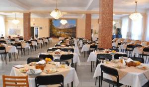Три просторных корпуса санатория могут принимать круглый год 200 гостей одновременно. Здравница разделена на клуб-столовую, лечебный и спальный корпуса. Все они объедены в один комплекс крытыми переходами. Для уютного и приятного досуга здесь имеется библиотека, танцевальный и киноконцертный залы. Вечерами после процедур проводятся дискотеки, кинопросмотры, лекции, концерты и чествование именинников.