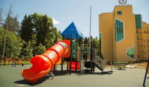 Главный корпус курорта "Красная Пахра" - 7-ти этажное здание. В корпусе курорта "Красная Пахра" находится ресторан, лечебная база, бассейн.