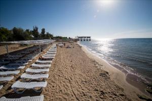 Песчаный, собственный, до пляжа 350 метров. Пляж оборудованный для комфортного и безопасного отдыха: песчаное дно, навесы от солнца, шезлонги, раздевалки, душевые кабины, водные аттракционы. На пляже работают матросы-спасатели, предоставляется медицинское обслуживание.