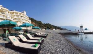 Благоустроенный галечный пляж, который находится прямо на территории отеля "Palmira Palace" (100 м от корпуса). Спустится к пляжу можно, воспользовавшись, панорамным лифтом, любуясь при этом потрясающими видами.