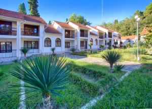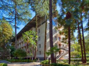 Пансионат «Айтар» представляет собой два 4-этажных корпуса и десять 2-этажных коттеджей, а также корпус категории эконом.