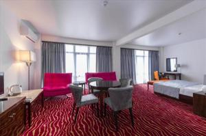 Все категории номеров обладают достойным спектром удобств. В них есть все необходимое для комфортного отдыха путешественника: удобная мебель, гардероб, чемоданница, рабочий стол с дополнительным освещением, мягкий ковролин, индивидуальная система климат-контроля, телевизор с плоским экраном и кабельными каналами, телефон, сейф, беспроводной интернет, а также собственная ванная комната с ванной или душем, феном и туалетно-косметическими принадлежностями. Во всех номерах отеля возможно 1-местное и 2-местное проживание. В большинстве номеров возможно размещение троих гостей ( 2 осн.+1 доп.место).