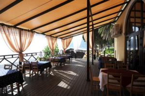 Собственный, песчанно - галечный, оборудованный (лежаки и зонты), в 100 метрах от корпусов. К услугам отдыхающих: гидроциклы, катамараны, прогулочные лодки, водные аттракционы. На пляже - пляжный бар с широким ассортиментом напитков и блюд.