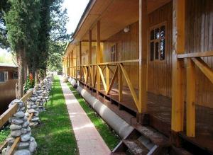 Корпус: 1-этажные деревянные домики, 2-этажные деревянные коттеджи.
