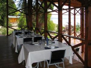 Расположен на самом берегу моря, на въезде в г. Новый Афон . Пляж собственный галечный, оборудованный лежаками и зонтами, протяженностью 200 м.