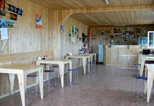 Обеденный зал с баром расположены в отдельном строении. Комплексное питание в кафе с панорамным видом на Байкал (завтрак шведский стол с 9.00 до 10.30, обед с салат-баром с 14.00 до 15.00, ужин с салат-баром с 19.00 до 20.00) включено в стоимость проживания