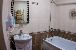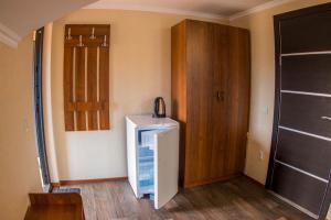 В номерах : две кровати, прикроватные тумбы, санузел, душ, фен,холодильник, телевизор с плоским экраном, чайник, шкаф, стол, диванчик.