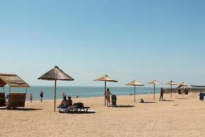 - пляж собственный (100-150 метров от номера), мелкий ракушечник, дно чистое, без водорослей, навесы, тростниковые зонтики, лежаки, пункт проката пляжного инвентаря, катера (прокат, прогулки), гидроциклы, катание на «банане» и «лягушках-ватрушках»;