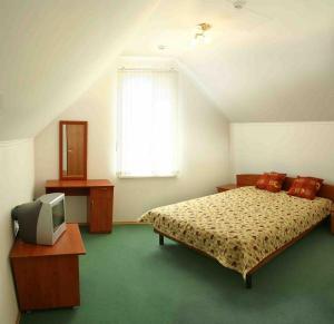 Два варианта номера: стандартный с балконом и мансардна без балкона (расположен под крышей, необычная форма окна, одна стена скошена, на окнах - жалюзи).