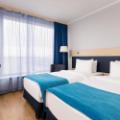 двухместные номера площадью 33 кв. м с одной большой или двумя раздельными кроватями. Вид - во внутренний двор гостиницы. Номера оснащены: кондиционером, интерактивным IP-телевидением, WI-FI, феном, в наличие халат, одноразовые тапочки, бритвенный и зубной наборы, шапочка для душа, письменные принадлежности, гладильная доска с утюгом (по запросу в номер)
