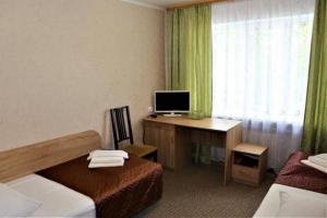 Гостиница расположена в самом центре города, на берегу реки Великой. Удобное расположение вблизи от главных улиц – Рижского и Октябрьского проспектов. Из окон открывается великолепный вид, ведь на противоположном берегу реки – псковский Кремль. Перед гостиницей – часовня в честь Великой Равноапостольной княгини Ольги. В гостинице - уютная обстановка, недавно сделан косметический ремонт. Номера категорий «Эконом» (в номере раковина, душевые и туалет на этаже), «Стандарт», «Комфорт» и «Люкс». Завтрак континентальный, 6 вариантов меню на выбор.