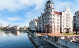 президент: великолепный панорамный вид на набережную реки Преголя и